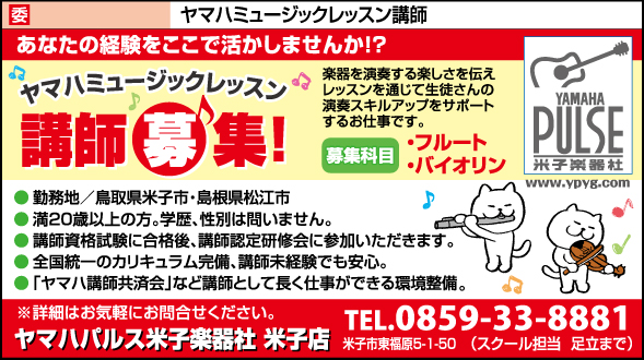 - 米子市 《委》ミュージックレッスン講師 | ヤマハパルス米子楽器社