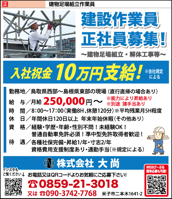 - 米子市 《正》足場工作作業員 | 株式会社大尚