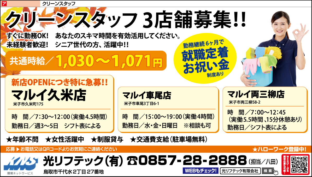 - 米子市 《ア》クリーンスタッフ | 光リフテック有限会社