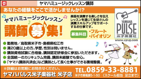 - 松江市 《委》ミュージックレッスン講師 | ヤマハパルス米子楽器社